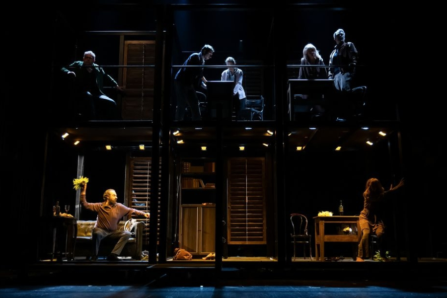 Scenografija (Greta Godnič) se sastoji od te gostionice na čijoj je terasi smješten orkestar te je tako vrlo blizu izvođačima, bez zauzimanja dodatnog prostora. Odjeća je prilično maštovita (Leo Kulaš) pa su, recimo, piloti do struka potpuno odjeveni (kožne jakne, avijatičarske kape i naočale), a od struka su u tajicama i nose dvokrilne lagane avione čiji se propeler nalazi na visini genitalija... Haljine su uglavnom lepršave i svjetlih boja, ali ove mi se tajice nikako ne sviđaju, jer vrlo ružno stoje (možda su se ofucale od premijere do izedbe 4.4.2017.).